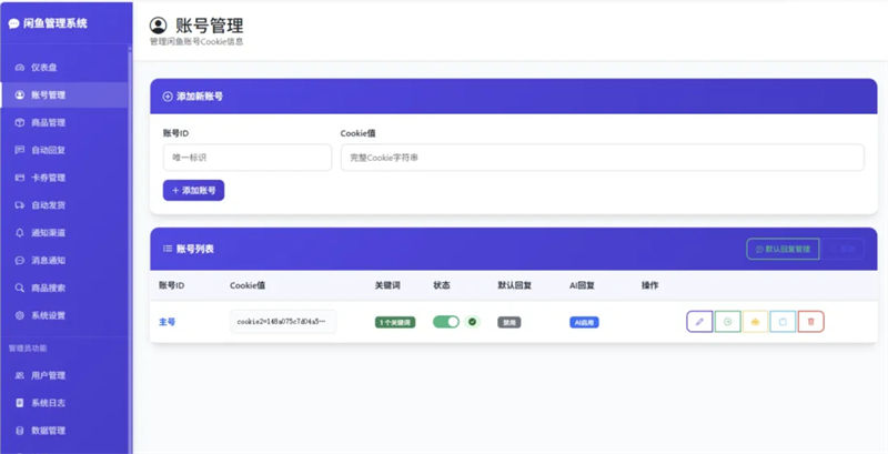 一个功能完整的闲鱼自动回复和管理系统,支持多用户、多账号管理,具备智能回复、自动发货、自动确认发货、商品管理等企业级功能。