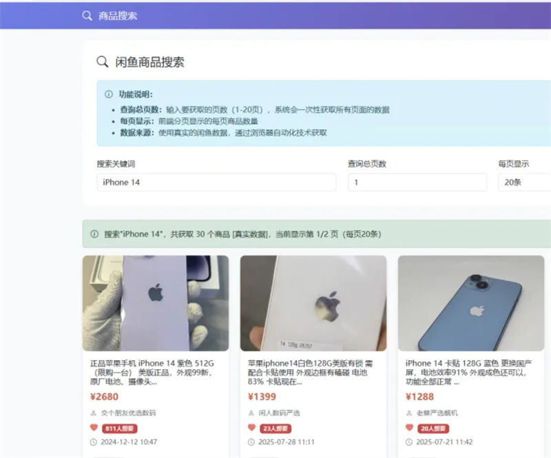 • 真实数据获取 – 基于Playwright技术获取真实闲鱼商品数据