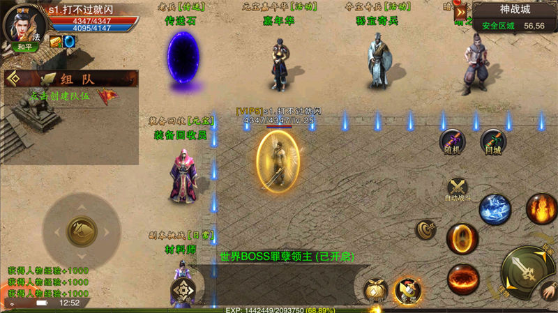 游戏玩法相比于现在市场上各种复制地图的传奇手游,它只有两个大陆,神战城和二大陆。大多数时间在神战城和野外地图之间打怪升级捡装备,转生后可以去二大陆打各种副本,它的转生系统很有意思,70级才可以转生,转生后等级会变成1转35级,之后70级又可以转生成2转40级,以此类推。这样有个好处就是不会出现一个等级非常高的玩家,大家都在从一个起跑线。